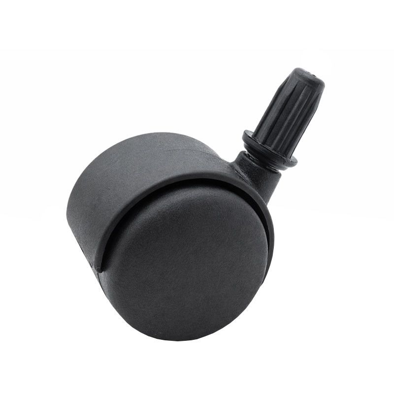 Csapos, fekete színű, műanyag bútorgörgő. Fék nélküli kivitel, szabadon guruló.