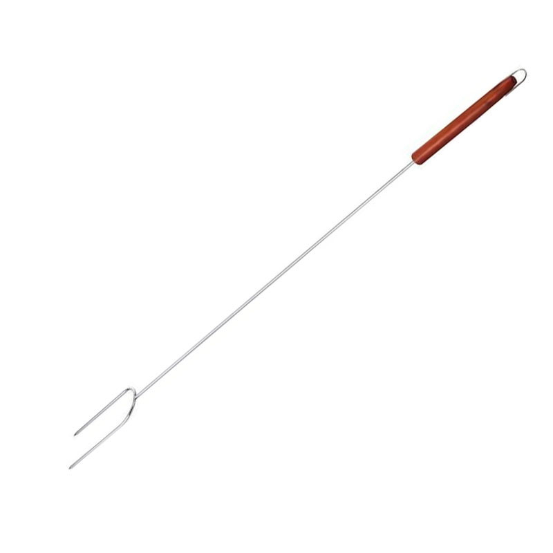 Minőségi fém grillező nyárs, mely ideális húsok, zöldségek, kolbászok és egyéb grillezendő ételek elkészítéséhez. A hosszú kialakítás lehetővé teszi a kényelmes és biztonságos használatot akár tűzön, akár grillen; a hegyes vég segíti az ételek stabil rögzítését. Fa markolattal rendelkezik a kellemes és ergonómikus fogás érdekében. Egyszerű, praktikus, elengedhetetlen kellék minden szabadtéri sütögetéshez.