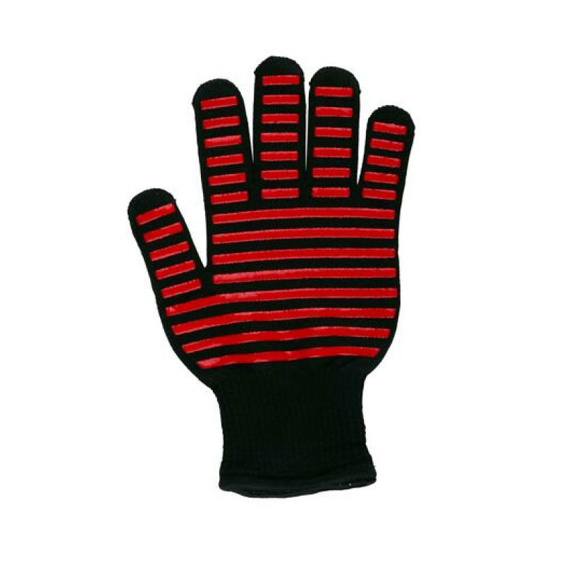 Hőálló grillkesztyű magas védelemmel a forró felületek és a magas hőmérséklet ellen. A hőálló kesztyűk teljes védelmet nyújthatnak a forró rácsok, a szén és a magas hőmérséklet ellen, biztosítva a biztonságot grillezés és sütés során. A vastag anyag hosszan tartó védelmet és tartósságot garantálhat még intenzív használat mellett is. A kesztyű speciális felülete szilárd fogást biztosít, kiküszöbölve a csúszás veszélyét forró szerszámok és élelmiszerek kezelésekor.