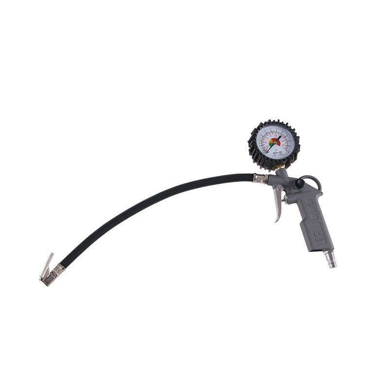 Praktikus légpisztoly beépített manométerrel, amely ideális autógumik, kerékpárgumik, labdák és egyéb felfújható eszközök nyomásának ellenőrzésére és felfújására. Masszív kivitel, kényelmes fogás és pontos mérés jellemzi.